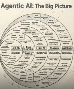Le visuel « Agentic AI : The Big Picture » provient d’un post LinkedIn de Brij Kishore Pandey.