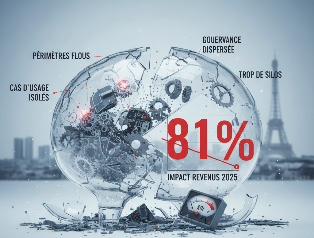 81 % des dirigeants français déclarent que l’intelligence artificielle n’a eu aucun effet sur les revenus de leur entreprise en 2025. Le chiffre, tiré de la dernière enquête mondiale de PwC (Global CEO Survey 2026), sonne comme une alerte. Non pas sur la technologie elle-même, mais sur la capacité des entreprises françaises à en extraire de la valeur mesurable. Au-delà des effets d’annonce et des projets vitrine, une réalité s’impose : le retour sur investissement de l’IA reste difficile à démontrer.